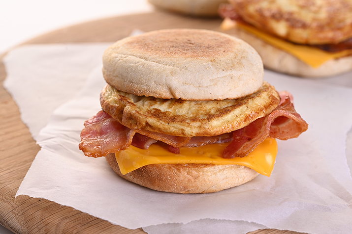 Ready cooked plain omelette. Made with British milk and free-range British eggs. Fits a 4" bread muffin/bun. Packed 2 x 25. Suitable for vegetarians.