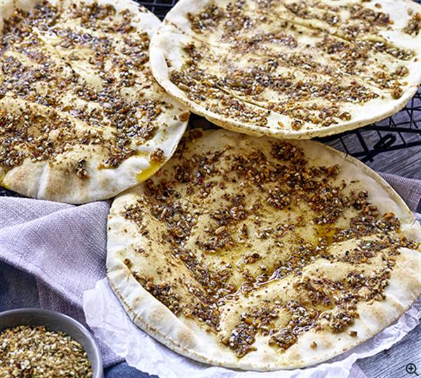Traditional, round-shaped flatbread (khobez), ideal for use as an alternative sandwich carrier, posh pizza base or warm and serve as an accompaniment.